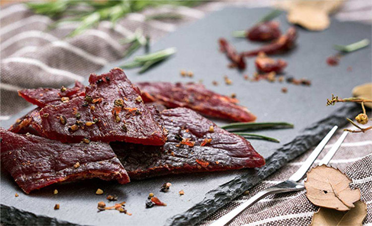 牛肉烘干:烘干的目的主要是促進發(fā)色和脫水熟化。將鋪平在篩子上的已連成一大張的肉片放入烘干房中,烘干的溫度在55~60℃,前期烘干溫度可稍高。